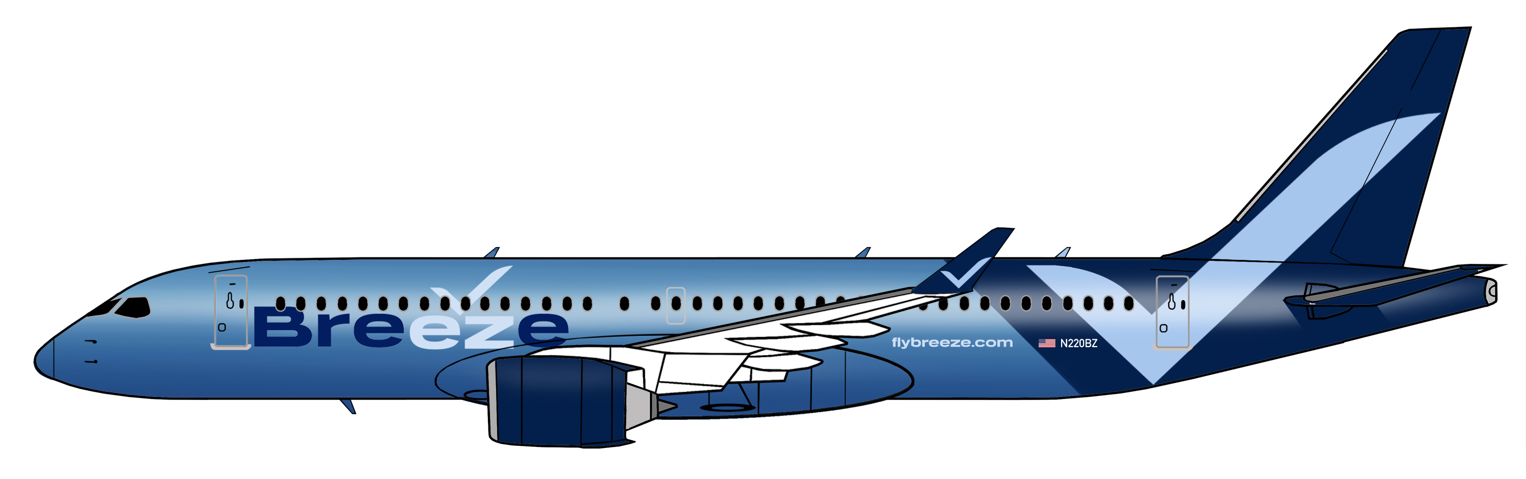 Como as demais empresas irmãs, a livery da Breeze aposta nas tonalidades de azul e na simplicidade e bom gosto visuais, como pode ser conferido nas imagens que acompanham esta matéria.