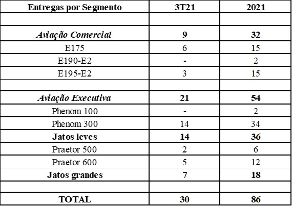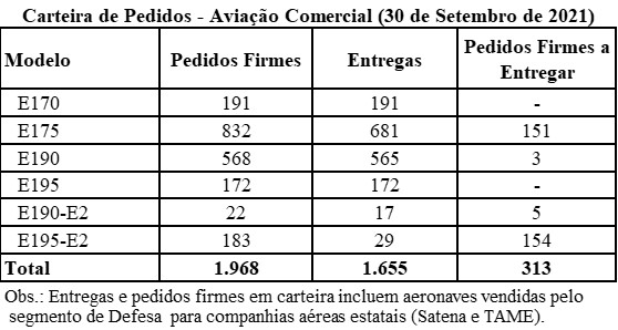 In comparison, there was an increase in the number of deliveries, which in 1Q21 was 22 jets, 9 commercial and 13 executive. As of March 31, the firm order backlog totaled $14.2 billion. However, there was practically stability with 2Q21, when 34 jets were delivered, of which 14 were commercial and 20 were executive. As of June 30, the backlog totaled $15.9 billion, marking a resumption from pre-pandemic levels.