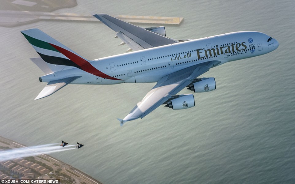 A equipe Jetman Dubai era também constituída pelos pilotos Fred Fugen, francês, e Ahmed Alshehhi, dos Emirados.