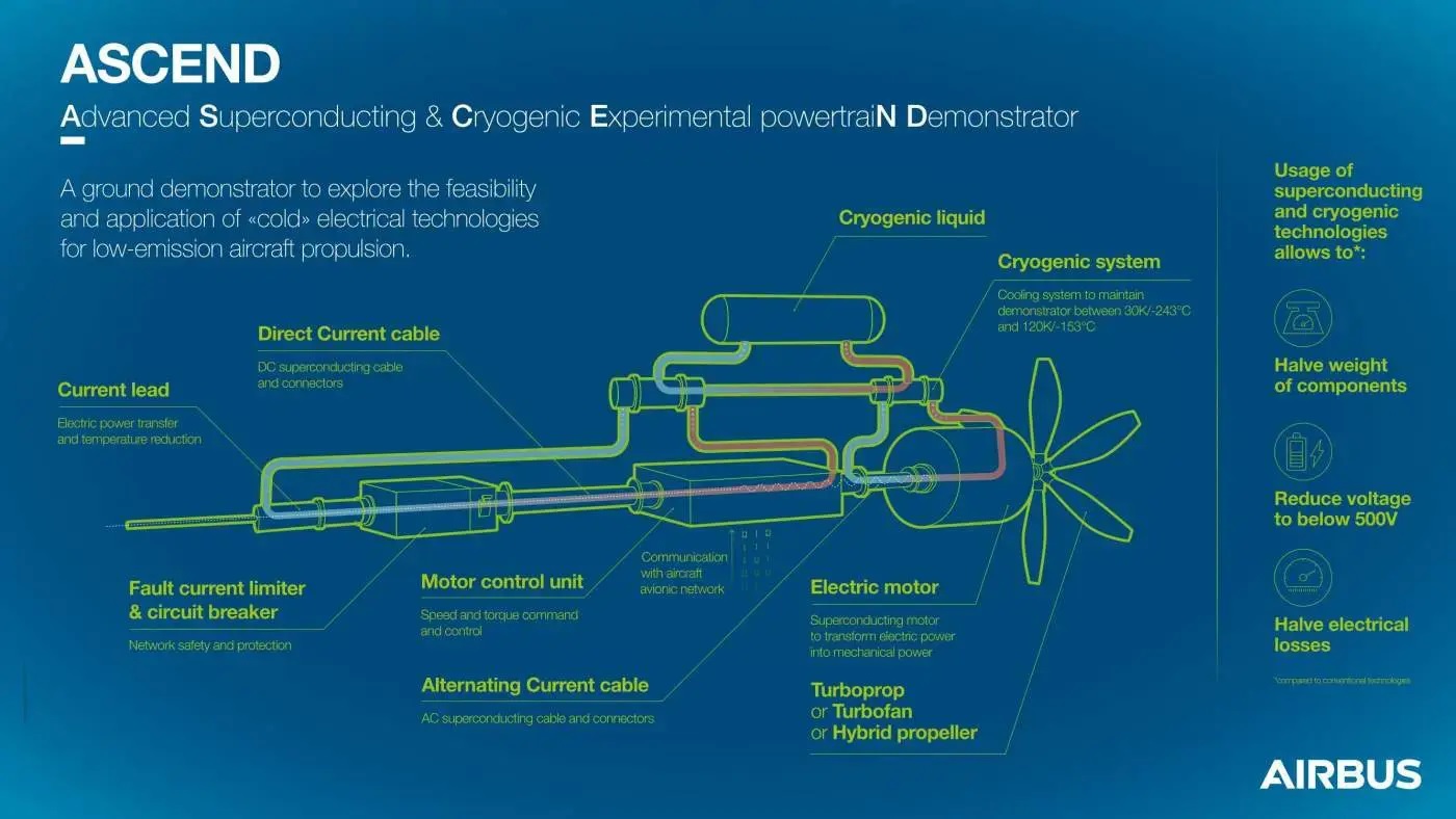 Segundo a Airbus, os aviões desenvolvidos hoje precisam de uma tensão acima de 500V. Com a refrigeração a baixíssimas temperaturas, a tensão poderá ser diminuída para valores menores do que esse.