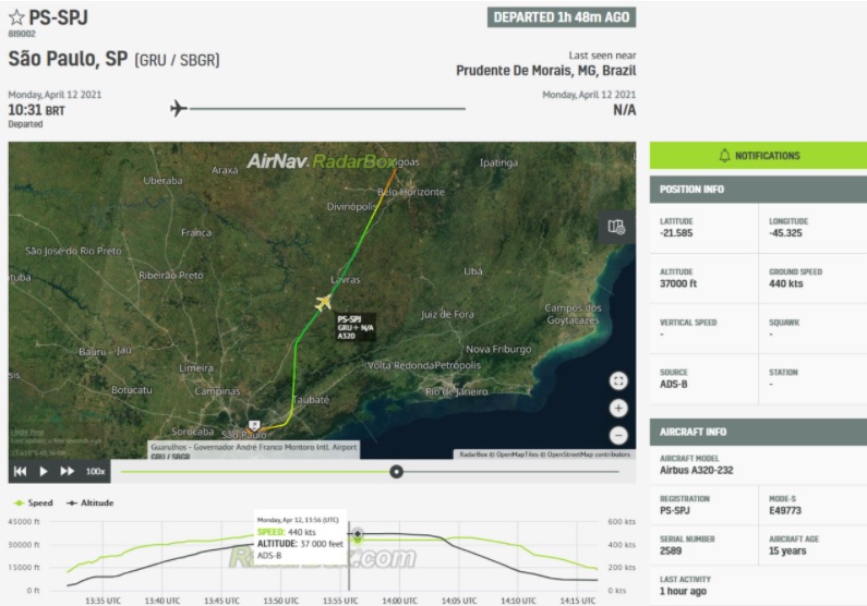 reprodução/radarbox.com
