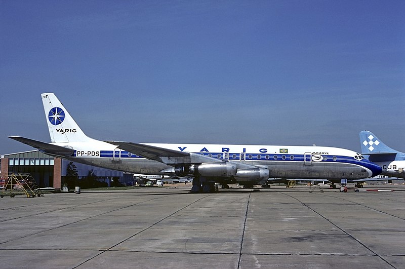 O Douglas DC8 surgiu como resposta ao Boeing 707. Tinha capacidade para até 259 passageiros. Porém o avião da Boeing teve mais sucesso. O Douglas DC8, por sua vez, foi importante para a viação, uma vez que, durante uma descida em um teste, ele quebrou a barreira do som, se tornando o primeiro avião de passageiros a realizar tal feito. Luxuoso, silencioso e espaçoso, o avião vendeu 556 unidades, das quais apenas 7 permanecem em voo. O modelo ativo mais conhecido pertence à NASA e é usado como laboratório voador.