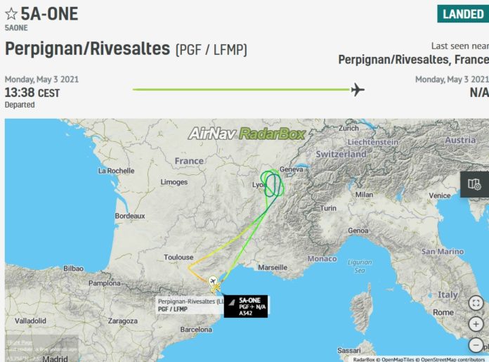 Após sete anos parado no aeroporto Aéroport de Perpignan-Rivesaltes, no sul da França, o Airbus do ex-líder da Líbia Muammar al-Gaddafi, morto em 2011, esteve em um voo de teste de duas horas, segundo um site de monitoramento especializado em aviação.
