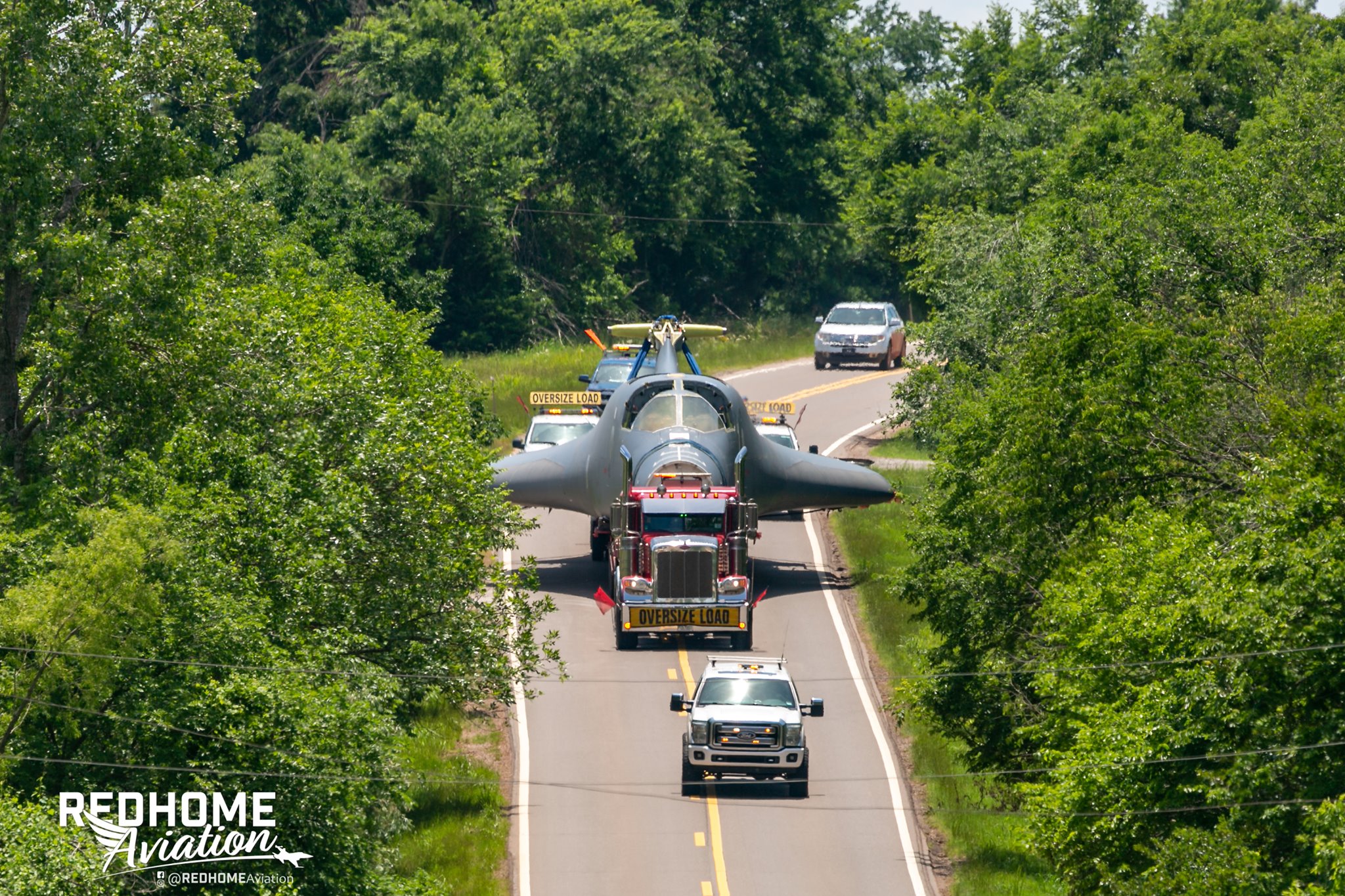 O avião, que realizou mais de dez mil horas de voo, foi parcialmente desmontado para poder ser transportado, e teve suas asas e partes da fuselagem previamente retirados. As partes retiradas também foram enviadas para a universidade. O caça foi transportado pela Berard Transportation e a página Redhome Aviation acompanhou o transporte, registrando-o em imagens.