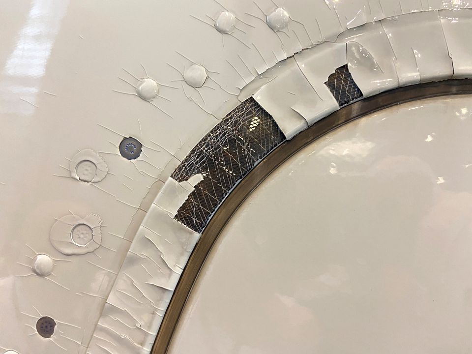 Depois de procurada pelo Reuters, dessa vez, a Airbus disse que o desgaste inicial da pintura chegou a fazer com que a subcamada de malha, que serve para absorver raios, se tornasse visível e que está trabalhando para consertar o defeito.