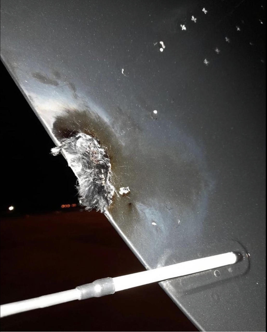 Além do vídeo, Miley também publicou uma foto do dano causado pelo raio: