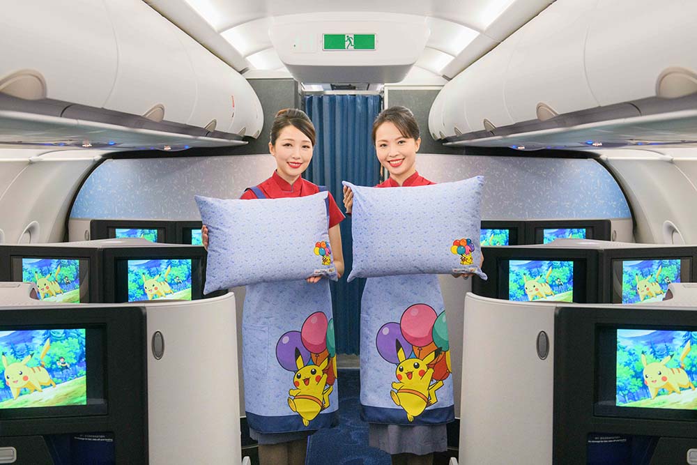 Além disso, a China Airlines também oferecerá outras ações no tema de Pokémon, como os cartões de embarque personalizados para os passageiros desta aeronave, por exemplo. O interior da aeronave também foi personalizado, com imagens estampadas nos bagageiros, nas almofadas e nos talheres e pratos oferecidos no serviço de bordo.