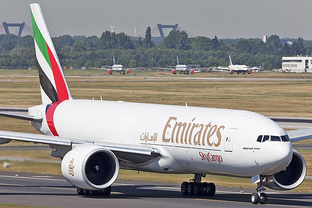 Boeing 777F Emirates Sky Cargo CC BY-SA 2.0, via wikimedia commons