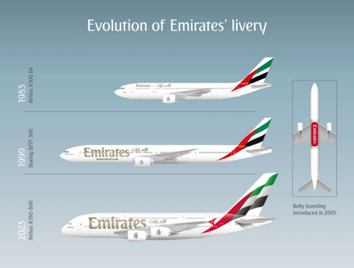 A Emirates conseguiu mudar a pintura, principalmente da cauda do avião, mas sem alterar completamente a sua identidade visual, de modo que qualquer um que seja familiarizado com a aviação vai olhar e saber que se trata da Emirates.