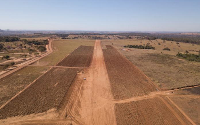 La construcción comenzó el 15 de julio. La construcción dividida en fases, se encuentra en la primera, de cuatro. La primera fase incluye la parte del terreno de movimiento de tierras y está prevista su finalización en 2024, con 72 lotes ya entregados y con la pista de 1800 metros de largo y 30 metros de ancho. Y podrá recibir desde avionetas hasta aviones del tamaño del Embraer Legacy 600.